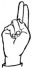 На ћирилици написано МИНА ЈОВАНЧЕВИЋ састоји се из 14 слова [?]. Исписано ћириличном једноручном азбуком за глувонеме: